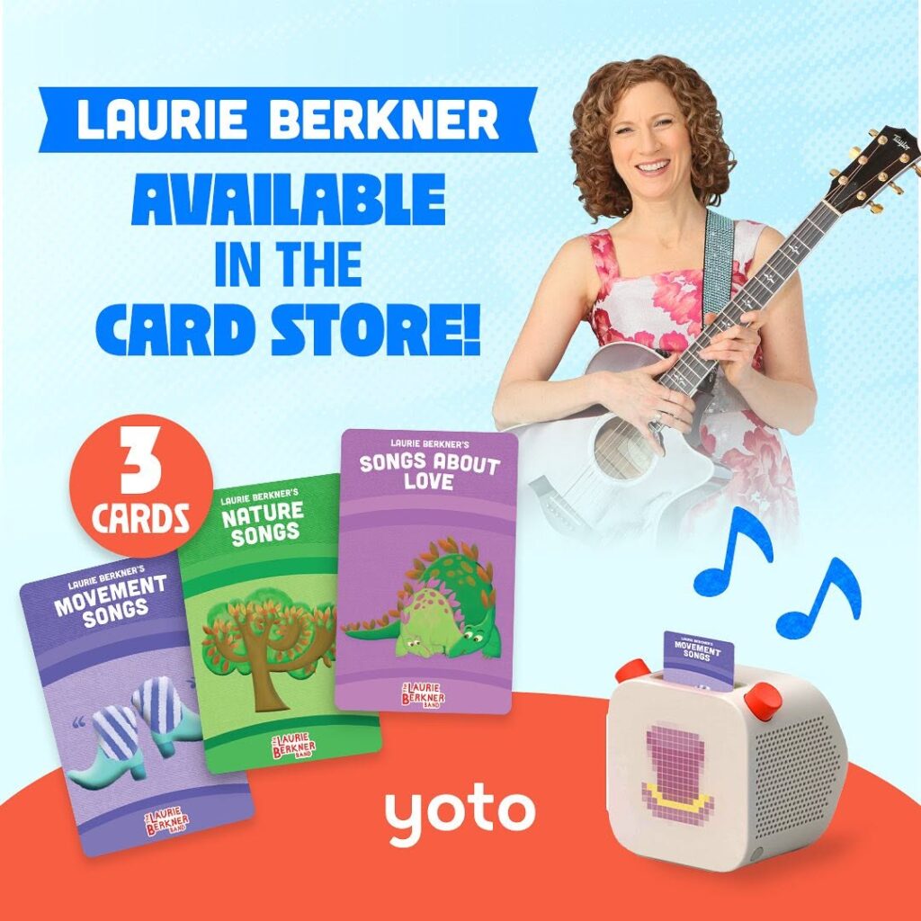 Get instant access in the Yoto App with the Digital Card, and play it anywhere! You can even link it to a Make Your Own Card and download your favorite Laurie Berkner Band songs