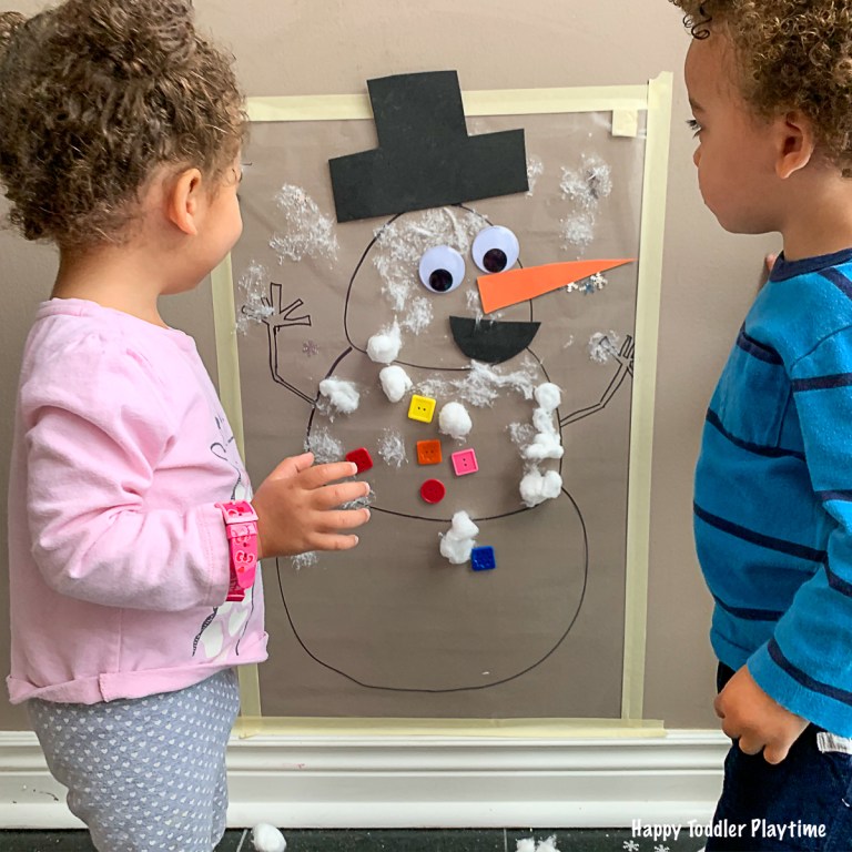 Get in the holiday mood with this Snowman Sticky Wall from @happytoddlerplaytime! Check out Happy Toddler Playtime for more super cute craft ideas for your little ones!