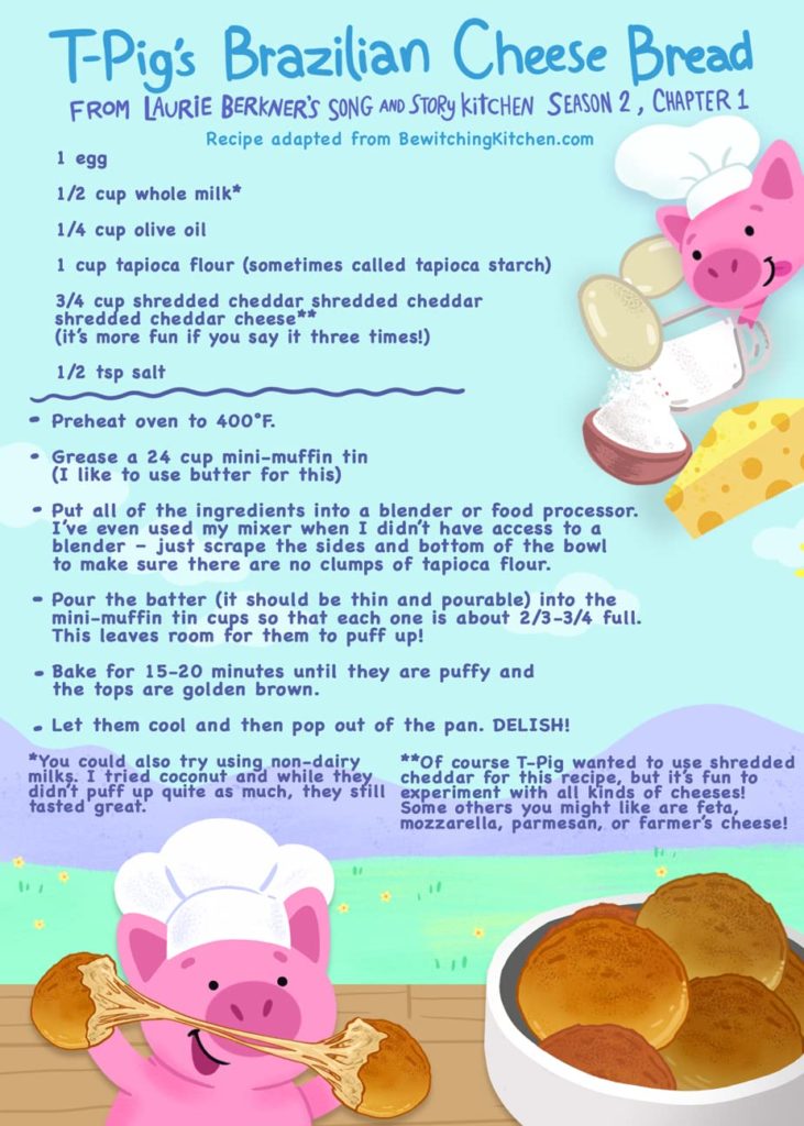 Alright, Kitchen Kids! Grab your grown-up and head to the kitchen. We are cooking up T-Pig’s famous Brazilian Cheese Bread!
