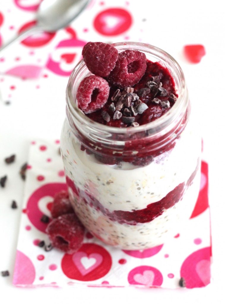 Valentines Day Overnight Oats with Raspberry Chia Jam!