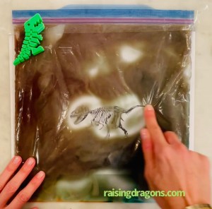 Whaddaya think of that!? Have a dinosaur dig with this Fossil Dig Dinosaur Sensory Bag from @raisingdragons! Find more kid-friendly activities from Raising Dragons here!